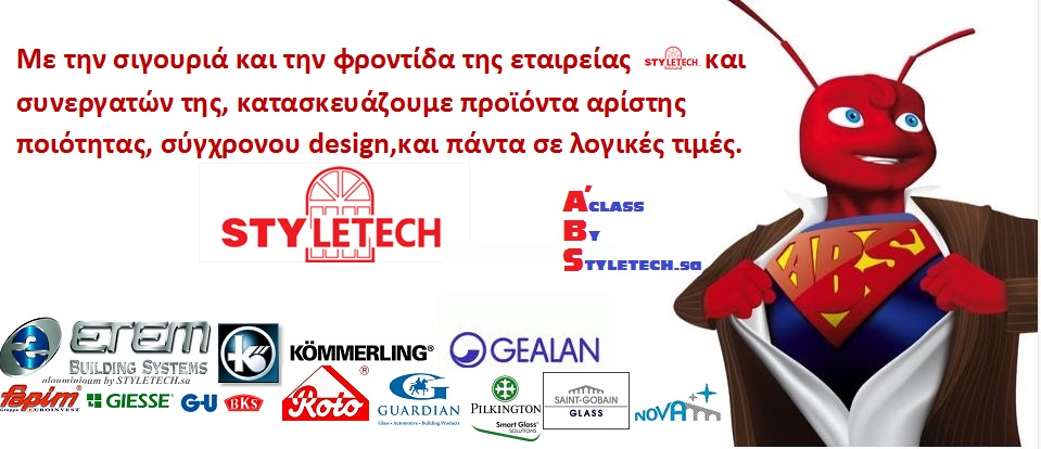 We produce, manufacture frames, aluminum, pvc, synthetic, Etem, Europa, Rehau, sound insulation, thermal insulation, energy, save home, renovation, replacement, warranty Thank you for your interest in our products. H STYLETECH is a manufacturer of aluminum frames and uPvc. Established (since we are at the desks of the Polytechnic in 1980, with new ideas and dreams, and beyond) in 1992 and is among the fastest growing in the industry. Apart from the high quality and technologically advanced equipment and our skilled staff, we have acquired the necessary quality certificates, and continuously improved technology, with respect to the environment.  We produce and place aluminum windows and upvc classical form (opening, sliding, superimposed) or special shapes (harmonica, sliding / reclining, thermal break and aluminum-wood combinations) in many colors, simple, metal or wood imitation. The shutters have the ability to produce our own profiles which are certified with exclusivity in 9 Beaufort and class 6. Can be configured in single-ply, two-ply, clover, four leaf and exafyllo. We pay great attention to detail and functionality of the structure, so the connections profile and heavy frames made ​​with thermo bonding press, which is 100% aluminum and comes with a special adhesive and Sealant in the sections of the profile. The hard part is not daunting, but it is a challenge for us! From then until today, always based on the creative artistry and experience, and solely with all the architectural requirements of customers with excellent construction provides durability and aesthetics meet the needs windows, railings, doors and windows. The company has systems in aluminum and upvc, for individuals who want reliable solutions for your home. The quality systems of aluminum and upvc, advanced technology offered in STYLETECH.sa guarantee certain outcomes and the ability to use flexible solutions making everything aesthetically desirable, and functional outcome. For manufacturing companies, the company STYLETECH.sa proposed products meet all European standards with all necessary international certifications.  Our company by having a long, successful and consistent presence in the Greek market, is today one of the most notable names in the construction of aluminum and upvc. The long presence in the construction industry, aluminum and upvc, and satisfied customers, we are guaranteed that our construction excel in terms of quality, functionality and aesthetics. The special care in manufacturing quality products, proper implementation, attention to detail and on-time delivery characterize the company and give a name of trust.  Our company selects the aluminum ETEM BUILDINGS, the sole company of its kind, which acquired the specialized European quality certificates QUALANOD (for anodizing) and QUALICOAT (for powder coating). Our company selects the profile upvc, of the most significant companies in the European market, focusing Joined German producer profile, with the highest standards and quality certifications and parts thereof. The high quality products, the great stock, professionalism, reliability, service provides aftermarket products are some additional reasons that our company prefers ETEM BUILDINGS and products REHAU.Apokoryfoma excellent product quality we have a certificate of ITT, ISO, CE. Written engyisi10 years 10 years .. absolute consistency in terms of agreement and deliver on time. Refined largest and modern showroom where is exposed a vast range of products. Experienced and knowledgeable staff provides guests with full information on all products and fittings exposed. Personal appointments for each client. The partners STYLETECH.sa form the core of executive staff, flanked by staff permanent and permanent, regular and extraordinary scientific partners who include: • Civil Engineering • Mechanical Engineering • Graduate Department of Computer Science and Computer • Economists • Legal • Tax. Our goal is customer satisfaction through continuous delivery of products and customer support, the proposal and implementation until construction with certified materials and the completion of the project.  Contact us, let us know by promise you that apart from our affordable prices, you will also meet people with great experience in manufacturing aluminum frames, upvc, for your new home, renovating your cottage for renewal your professional space, eager to solve all your problems for heat & sound insulation, energy savings, safety and aesthetics. high quality services. Equipment: In our group of experienced technical designs, produces and installs advanced aluminum extrusions leading Greek companies, and foreign and synthetic frames, leading companies, with local provenance, or German firms in frames pvc. To achieve this, our factory is equipped with latest technology machinery production.      We continuously update our fleet of machines, so we can produce frames and structures would first like to us to make sure that you like and you.    • Unit planning, design and production order consisting of modern computers and appropriate staff. Modern machinery.  • Unit automatic cutting of materials for doors and windows, aluminum and synthetic automatic cutting saw two heads, with the possibility of cutting the programming of the unit planning and instruction.    • Cutting unit with large illustrious, vertical drive, rotating 360 degrees, with automatic shutdown of equipment, profiles, aluminum and synthetic materials.    • Automatic cutting saw blinds, shutters and accessories.    • Saw for cutting aluminum slats and synthetic in vertical format.    • Automatic saw for cutting and chandroma for aluminum slats.    • Automatic saw for cutting and chandroma in synthetic slats.    • Automatic drill presses profile to 185 combinations.    • Automatic xilouristiria for aluminum and plastic.    • Pantograph for drilling and chantroma locks Sliding in 