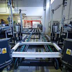 • Vertical machine - bench automatic support frames aluminum and pvc, for testarisma frames and glazing.
