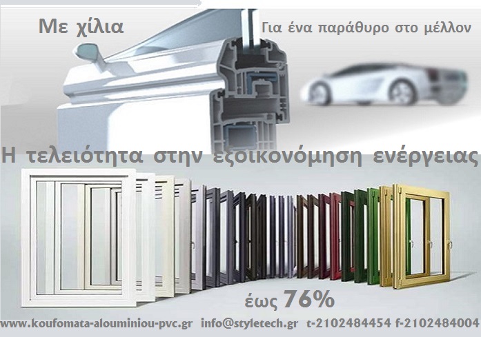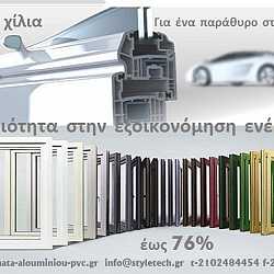 Παράγουμε, κατασκευάσουμε κουφώματα, αλουμινίου, pvc, συνθετικά, Etem, Europa, Rehau, ηχομόνωση, θερμομόνωση, ενεργειακά, εξοικονομώ κατ'οίκον, ανακαίνιση, αντικατάσταση, εγγύηση   Προφίλ εταιρείας STYLETECH.sa Σας ευχαριστούμε για το ενδιαφέρον σας στα προϊόντα της εταιρίας µας. H STYLETECH είναι µια κατασκευαστική εταιρία κουφωμάτων αλουμινίου και U-pvc. Ιδρύθηκε το 1992 και είναι από τις πιο ραγδαία αναπτυσσόμενες του κλάδου. Με πάνω από 36 χρόνια εμπειρίας και σύγχρονης τεχνολογίας κουφωμάτων, παράγουμε προϊόντα υψηλής ποιότητας που δημιουργούν αξία για τους πελάτες μας μειώνοντας παράλληλα το κόστος. Η ευέλικτη δομή της εταιρείας μας, σε συνδυασμό με την τεχνογνωσία των εργαζομένων και των συνεργατών μας εγγυώνται την σταθερή ποιότητα και την τεχνική ακμή ολόκληρης της γραμμής μας. Πέρα από τον άρτιο και σύγχρονο µηχανολογικό µας εξοπλισµό αλλά και το εξειδικευµένο προσωπικό, έχουµε αποκτήσει τα απαιτούμενα πιστοποιητικά ποιότητος, και συνεχώς βελτιωνόμαστε τεχνολογικά ,με σεβασμό στο περιβάλλον. Στα πατζούρια, έχουµε την δυνατότητα να παράγουµε δικό µας προφίλ, το οποίο είναι πιστοποιημένο με αποκλειστικότητα σε 9 μποφόρ και class 6. Μπορεί να κατασκευαστεί σε µονόφυλλο, δίφυλλο, τρίφυλλο, τετράφυλλο και εξάφυλλο. ∆ίνουµε µεγάλη σηµασία στην λεπτοµέρεια και την λειτουργικότητα της κατασκευής, για αυτό οι συνδέσεις κουφωμάτων βαρέων προφίλ και θέρμο γίνονται µε δέσιµο πρέσας, η οποία είναι 100% προφίλ αλουµινίου και µπαίνει µε ειδική κόλλα και αρµόκολλα στις διατοµές του προφίλ. Το δύσκολο δεν είναι αποθαρρυντικό, αλλά αποτελεί για εμάς πρόκληση! Από τότε έως σήμερα, βασισμένη πάντα στο δημιουργικό μεράκι και την πείρα, και με αποκλειστικό γνώμονα όλες τις αρχιτεκτονικές απαιτήσεις των πελατών, προσφέρει κατασκευές με εξαιρετική αντοχή και αισθητική, όπου καλύπτουν τις ανάγκες σε κουφώματα, κάγκελα, πόρτες και παράθυρα. Η εταιρεία διαθέτει συστήματα αλουμινίου και u-pvc, για ιδιώτες που θέλουν αξιόπιστες λύσεις για το σπίτι. Τα ποιοτικά συστήματα αλουμινίου και u-pvc, προηγμένης τεχνολογίας που προσφέρονται στην STYLETECH.sa, εγγυώνται σίγουρα αποτελέσματα και την δυνατότητα στην προσφυγή ευέλικτων λύσεων, επιφέροντας πάντα το αισθητικά επιθυμητό, αλλά και λειτουργικό αποτέλεσμα. Για τις κατασκευαστικές εταιρείες, η εταιρεία STYLETECH.sa προτείνει προϊόντα που πληρούν όλες τις ευρωπαϊκές προδιαγραφές με όλες τις απαραίτητες-διεθνής-πιστοποιήσεις. Η εταιρεία μας, έχοντας μία πολύχρονη πετυχημένη και συνεπή παρουσία στην ελληνική αγορά, είναι σήμερα ένα από τα πλέον αξιόλογα ονόματα στον χώρο των κατασκευών αλουμινίου και u-pvc. Η πολυετής παρουσία μας στον κλάδο κατασκευής αλουμινίου και u-pvc, και οι ικανοποιημένοι πελάτες μας, είναι εγγύηση ότι οι κατασκευές μας υπερέχουν από πλευράς ποιότητας, λειτουργικότητας και αισθητικής. Η ιδιαίτερη επιμέλεια στη ποιοτική κατασκευή των προϊόντων, η σωστή εφαρμογή τους, η προσοχή στη λεπτομέρεια και η συνέπεια στους χρόνους παράδοσης, χαρακτηρίζουν την εταιρεία και της χαρίζουν ένα όνομα εμπιστοσύνης. Η εταιρεία μας επιλέγει τα προφίλ αλουμινίου της Εtem building, Europa, Alouminco, της μοναδικής εταιρείας στο είδος της, που απέκτησε τα Ευρωπαϊκά εξειδικευμένα πιστοποιητικά ποιότητας QUALANOD (για την ανοδίωση) και QUALICOAT (για την ηλεκτροστατική βαφή). Η εταιρεία μας επιλέγει τα προφίλ u-pvc, από τις πιο αξιόλογες εταιρείες τις ευρωπαϊκ