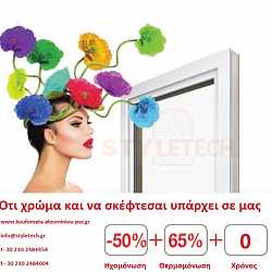 Παράγουμε, κατασκευάσουμε κουφώματα, αλουμινίου, pvc, συνθετικά, Etem, Europa, Rehau, ηχομόνωση, θερμομόνωση, ενεργειακά, εξοικονομώ κατ'οίκον, ανακαίνιση, αντικατάσταση, εγγύηση   Προφίλ εταιρείας STYLETECH.sa Σας ευχαριστούμε για το ενδιαφέρον σας στα προϊόντα της εταιρίας µας. H STYLETECH είναι µια κατασκευαστική εταιρία κουφωμάτων αλουμινίου και U-pvc. Ιδρύθηκε το 1992 και είναι από τις πιο ραγδαία αναπτυσσόμενες του κλάδου. Με πάνω από 36 χρόνια εμπειρίας και σύγχρονης τεχνολογίας κουφωμάτων, παράγουμε προϊόντα υψηλής ποιότητας που δημιουργούν αξία για τους πελάτες μας μειώνοντας παράλληλα το κόστος. Η ευέλικτη δομή της εταιρείας μας, σε συνδυασμό με την τεχνογνωσία των εργαζομένων και των συνεργατών μας εγγυώνται την σταθερή ποιότητα και την τεχνική ακμή ολόκληρης της γραμμής μας. Πέρα από τον άρτιο και σύγχρονο µηχανολογικό µας εξοπλισµό αλλά και το εξειδικευµένο προσωπικό, έχουµε αποκτήσει τα απαιτούμενα πιστοποιητικά ποιότητος, και συνεχώς βελτιωνόμαστε τεχνολογικά ,με σεβασμό στο περιβάλλον. Στα πατζούρια, έχουµε την δυνατότητα να παράγουµε δικό µας προφίλ, το οποίο είναι πιστοποιημένο με αποκλειστικότητα σε 9 μποφόρ και class 6. Μπορεί να κατασκευαστεί σε µονόφυλλο, δίφυλλο, τρίφυλλο, τετράφυλλο και εξάφυλλο. ∆ίνουµε µεγάλη σηµασία στην λεπτοµέρεια και την λειτουργικότητα της κατασκευής, για αυτό οι συνδέσεις κουφωμάτων βαρέων προφίλ και θέρμο γίνονται µε δέσιµο πρέσας, η οποία είναι 100% προφίλ αλουµινίου και µπαίνει µε ειδική κόλλα και αρµόκολλα στις διατοµές του προφίλ. Το δύσκολο δεν είναι αποθαρρυντικό, αλλά αποτελεί για εμάς πρόκληση! Από τότε έως σήμερα, βασισμένη πάντα στο δημιουργικό μεράκι και την πείρα, και με αποκλειστικό γνώμονα όλες τις αρχιτεκτονικές απαιτήσεις των πελατών, προσφέρει κατασκευές με εξαιρετική αντοχή και αισθητική, όπου καλύπτουν τις ανάγκες σε κουφώματα, κάγκελα, πόρτες και παράθυρα. Η εταιρεία διαθέτει συστήματα αλουμινίου και u-pvc, για ιδιώτες που θέλουν αξιόπιστες λύσεις για το σπίτι. Τα ποιοτικά συστήματα αλουμινίου και u-pvc, προηγμένης τεχνολογίας που προσφέρονται στην STYLETECH.sa, εγγυώνται σίγουρα αποτελέσματα και την δυνατότητα στην προσφυγή ευέλικτων λύσεων, επιφέροντας πάντα το αισθητικά επιθυμητό, αλλά και λειτουργικό αποτέλεσμα. Για τις κατασκευαστικές εταιρείες, η εταιρεία STYLETECH.sa προτείνει προϊόντα που πληρούν όλες τις ευρωπαϊκές προδιαγραφές με όλες τις απαραίτητες-διεθνής-πιστοποιήσεις. Η εταιρεία μας, έχοντας μία πολύχρονη πετυχημένη και συνεπή παρουσία στην ελληνική αγορά, είναι σήμερα ένα από τα πλέον αξιόλογα ονόματα στον χώρο των κατασκευών αλουμινίου και u-pvc. Η πολυετής παρουσία μας στον κλάδο κατασκευής αλουμινίου και u-pvc, και οι ικανοποιημένοι πελάτες μας, είναι εγγύηση ότι οι κατασκευές μας υπερέχουν από πλευράς ποιότητας, λειτουργικότητας και αισθητικής. Η ιδιαίτερη επιμέλεια στη ποιοτική κατασκευή των προϊόντων, η σωστή εφαρμογή τους, η προσοχή στη λεπτομέρεια και η συνέπεια στους χρόνους παράδοσης, χαρακτηρίζουν την εταιρεία και της χαρίζουν ένα όνομα εμπιστοσύνης. Η εταιρεία μας επιλέγει τα προφίλ αλουμινίου της Εtem building, Europa, Alouminco, της μοναδικής εταιρείας στο είδος της, που απέκτησε τα Ευρωπαϊκά εξειδικευμένα πιστοποιητικά ποιότητας QUALANOD (για την ανοδίωση) και QUALICOAT (για την ηλεκτροστατική βαφή). Η εταιρεία μας επιλέγει τα προφίλ u-pvc, από τις πιο αξιόλογες εταιρείες τις ευρωπαϊκ