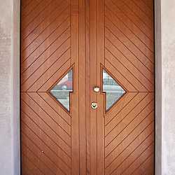 ·        Δίφυλλες εξώπορτες ανοιγόμενες προς τα μέσα και προς τα έξω, με φεγγίτη
