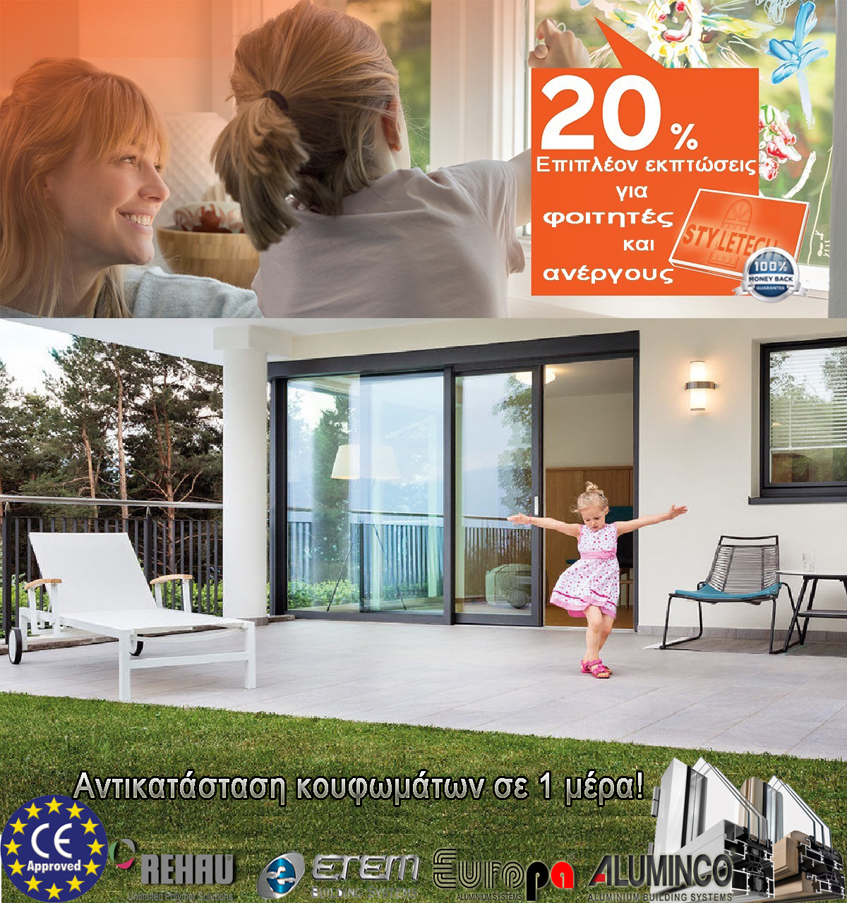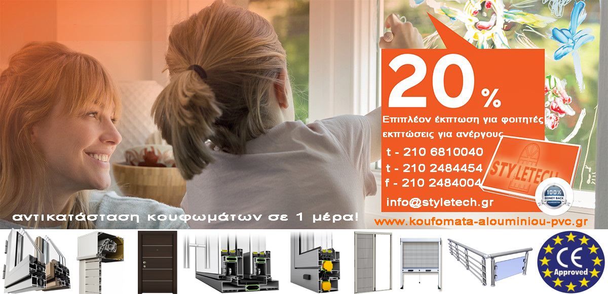 Παράγουμε, κατασκευάσουμε κουφώματα, αλουμινίου, pvc, συνθετικά, Etem, Europa, Rehau, ηχομόνωση, θερμομόνωση, ενεργειακά, εξοικονομώ κατ'οίκον, ανακαίνιση, αντικατάσταση, εγγύηση   Προφίλ εταιρείας STYLETECH.sa Σας ευχαριστούμε για το ενδιαφέρον σας στα προϊόντα της εταιρίας µας. H STYLETECH είναι µια κατασκευαστική εταιρία κουφωμάτων αλουμινίου και U-pvc. Ιδρύθηκε το 1992 και είναι από τις πιο ραγδαία αναπτυσσόμενες του κλάδου. Με πάνω από 36 χρόνια εμπειρίας και σύγχρονης τεχνολογίας κουφωμάτων, παράγουμε προϊόντα υψηλής ποιότητας που δημιουργούν αξία για τους πελάτες μας μειώνοντας παράλληλα το κόστος. Η ευέλικτη δομή της εταιρείας μας, σε συνδυασμό με την τεχνογνωσία των εργαζομένων και των συνεργατών μας εγγυώνται την σταθερή ποιότητα και την τεχνική ακμή ολόκληρης της γραμμής μας. Πέρα από τον άρτιο και σύγχρονο µηχανολογικό µας εξοπλισµό αλλά και το εξειδικευµένο προσωπικό, έχουµε αποκτήσει τα απαιτούμενα πιστοποιητικά ποιότητος, και συνεχώς βελτιωνόμαστε τεχνολογικά ,με σεβασμό στο περιβάλλον. Στα πατζούρια, έχουµε την δυνατότητα να παράγουµε δικό µας προφίλ, το οποίο είναι πιστοποιημένο με αποκλειστικότητα σε 9 μποφόρ και class 6. Μπορεί να κατασκευαστεί σε µονόφυλλο, δίφυλλο, τρίφυλλο, τετράφυλλο και εξάφυλλο. ∆ίνουµε µεγάλη σηµασία στην λεπτοµέρεια και την λειτουργικότητα της κατασκευής, για αυτό οι συνδέσεις κουφωμάτων βαρέων προφίλ και θέρμο γίνονται µε δέσιµο πρέσας, η οποία είναι 100% προφίλ αλουµινίου και µπαίνει µε ειδική κόλλα και αρµόκολλα στις διατοµές του προφίλ. Το δύσκολο δεν είναι αποθαρρυντικό, αλλά αποτελεί για εμάς πρόκληση! Από τότε έως σήμερα, βασισμένη πάντα στο δημιουργικό μεράκι και την πείρα, και με αποκλειστικό γνώμονα όλες τις αρχιτεκτονικές απαιτήσεις των πελατών, προσφέρει κατασκευές με εξαιρετική αντοχή και αισθητική, όπου καλύπτουν τις ανάγκες σε κουφώματα, κάγκελα, πόρτες και παράθυρα. Η εταιρεία διαθέτει συστήματα αλουμινίου και u-pvc, για ιδιώτες που θέλουν αξιόπιστες λύσεις για το σπίτι. Τα ποιοτικά συστήματα αλουμινίου και u-pvc, προηγμένης τεχνολογίας που προσφέρονται στην STYLETECH.sa, εγγυώνται σίγουρα αποτελέσματα και την δυνατότητα στην προσφυγή ευέλικτων λύσεων, επιφέροντας πάντα το αισθητικά επιθυμητό, αλλά και λειτουργικό αποτέλεσμα. Για τις κατασκευαστικές εταιρείες, η εταιρεία STYLETECH.sa προτείνει προϊόντα που πληρούν όλες τις ευρωπαϊκές προδιαγραφές με όλες τις απαραίτητες-διεθνής-πιστοποιήσεις. Η εταιρεία μας, έχοντας μία πολύχρονη πετυχημένη και συνεπή παρουσία στην ελληνική αγορά, είναι σήμερα ένα από τα πλέον αξιόλογα ονόματα στον χώρο των κατασκευών αλουμινίου και u-pvc. Η πολυετής παρουσία μας στον κλάδο κατασκευής αλουμινίου και u-pvc, και οι ικανοποιημένοι πελάτες μας, είναι εγγύηση ότι οι κατασκευές μας υπερέχουν από πλευράς ποιότητας, λειτουργικότητας και αισθητικής. Η ιδιαίτερη επιμέλεια στη ποιοτική κατασκευή των προϊόντων, η σωστή εφαρμογή τους, η προσοχή στη λεπτομέρεια και η συνέπεια στους χρόνους παράδοσης, χαρακτηρίζουν την εταιρεία και της χαρίζουν ένα όνομα εμπιστοσύνης. Η εταιρεία μας επιλέγει τα προφίλ αλουμινίου της Εtem building, Europa, Alouminco, της μοναδικής εταιρείας στο είδος της, που απέκτησε τα Ευρωπαϊκά εξειδικευμένα πιστοποιητικά ποιότητας QUALANOD (για την ανοδίωση) και QUALICOAT (για την ηλεκτροστατική βαφή). Η εταιρεία μας επιλέγει τα προφίλ u-pvc, από τις πιο αξιόλογες εταιρείες τις ευρωπαϊκ