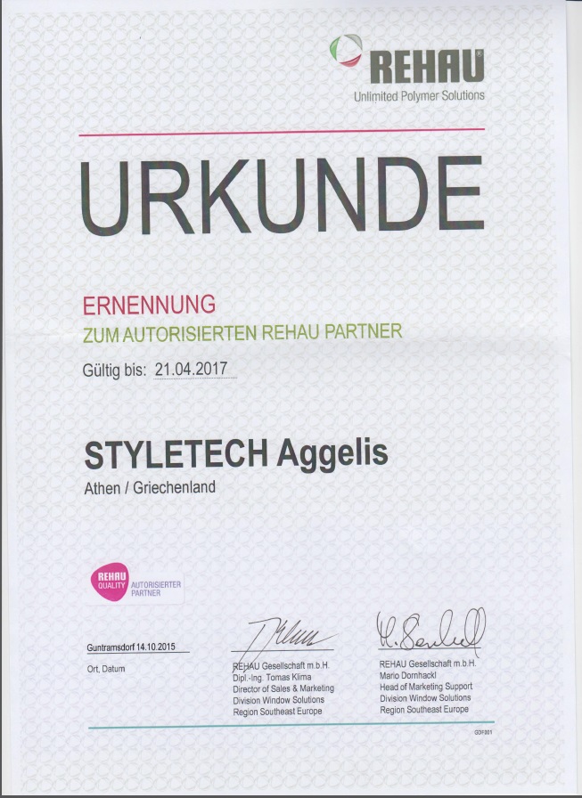 Παράγουμε, κατασκευάσουμε κουφώματα, αλουμινίου, pvc, συνθετικά, Etem, Europa, Rehau, ηχομόνωση, θερμομόνωση, ενεργειακά, εξοικονομώ κατ'οίκον, ανακαίνιση, αντικατάσταση, εγγύηση   Προφίλ εταιρείας STYLETECH.sa Σας ευχαριστούμε για το ενδιαφέρον σας στα προϊόντα της εταιρίας µας. H STYLETECH είναι µια κατασκευαστική εταιρία κουφωμάτων αλουμινίου και U-pvc. Ιδρύθηκε το 1992 και είναι από τις πιο ραγδαία αναπτυσσόμενες του κλάδου. Με πάνω από 36 χρόνια εμπειρίας και σύγχρονης τεχνολογίας κουφωμάτων, παράγουμε προϊόντα υψηλής ποιότητας που δημιουργούν αξία για τους πελάτες μας μειώνοντας παράλληλα το κόστος. Η ευέλικτη δομή της εταιρείας μας, σε συνδυασμό με την τεχνογνωσία των εργαζομένων και των συνεργατών μας εγγυώνται την σταθερή ποιότητα και την τεχνική ακμή ολόκληρης της γραμμής μας. Πέρα από τον άρτιο και σύγχρονο µηχανολογικό µας εξοπλισµό αλλά και το εξειδικευµένο προσωπικό, έχουµε αποκτήσει τα απαιτούμενα πιστοποιητικά ποιότητος, και συνεχώς βελτιωνόμαστε τεχνολογικά ,με σεβασμό στο περιβάλλον. Στα πατζούρια, έχουµε την δυνατότητα να παράγουµε δικό µας προφίλ, το οποίο είναι πιστοποιημένο με αποκλειστικότητα σε 9 μποφόρ και class 6. Μπορεί να κατασκευαστεί σε µονόφυλλο, δίφυλλο, τρίφυλλο, τετράφυλλο και εξάφυλλο. ∆ίνουµε µεγάλη σηµασία στην λεπτοµέρεια και την λειτουργικότητα της κατασκευής, για αυτό οι συνδέσεις κουφωμάτων βαρέων προφίλ και θέρμο γίνονται µε δέσιµο πρέσας, η οποία είναι 100% προφίλ αλουµινίου και µπαίνει µε ειδική κόλλα και αρµόκολλα στις διατοµές του προφίλ. Το δύσκολο δεν είναι αποθαρρυντικό, αλλά αποτελεί για εμάς πρόκληση! Από τότε έως σήμερα, βασισμένη πάντα στο δημιουργικό μεράκι και την πείρα, και με αποκλειστικό γνώμονα όλες τις αρχιτεκτονικές απαιτήσεις των πελατών, προσφέρει κατασκευές με εξαιρετική αντοχή και αισθητική, όπου καλύπτουν τις ανάγκες σε κουφώματα, κάγκελα, πόρτες και παράθυρα. Η εταιρεία διαθέτει συστήματα αλουμινίου και u-pvc, για ιδιώτες που θέλουν αξιόπιστες λύσεις για το σπίτι. Τα ποιοτικά συστήματα αλουμινίου και u-pvc, προηγμένης τεχνολογίας που προσφέρονται στην STYLETECH.sa, εγγυώνται σίγουρα αποτελέσματα και την δυνατότητα στην προσφυγή ευέλικτων λύσεων, επιφέροντας πάντα το αισθητικά επιθυμητό, αλλά και λειτουργικό αποτέλεσμα. Για τις κατασκευαστικές εταιρείες, η εταιρεία STYLETECH.sa προτείνει προϊόντα που πληρούν όλες τις ευρωπαϊκές προδιαγραφές με όλες τις απαραίτητες-διεθνής-πιστοποιήσεις. Η εταιρεία μας, έχοντας μία πολύχρονη πετυχημένη και συνεπή παρουσία στην ελληνική αγορά, είναι σήμερα ένα από τα πλέον αξιόλογα ονόματα στον χώρο των κατασκευών αλουμινίου και u-pvc. Η πολυετής παρουσία μας στον κλάδο κατασκευής αλουμινίου και u-pvc, και οι ικανοποιημένοι πελάτες μας, είναι εγγύηση ότι οι κατασκευές μας υπερέχουν από πλευράς ποιότητας, λειτουργικότητας και αισθητικής. Η ιδιαίτερη επιμέλεια στη ποιοτική κατασκευή των προϊόντων, η σωστή εφαρμογή τους, η προσοχή στη λεπτομέρεια και η συνέπεια στους χρόνους παράδοσης, χαρακτηρίζουν την εταιρεία και της χαρίζουν ένα όνομα εμπιστοσύνης. Η εταιρεία μας επιλέγει τα προφίλ αλουμινίου της Εtem building, Europa, Alouminco, της μοναδικής εταιρείας στο είδος της, που απέκτησε τα Ευρωπαϊκά εξειδικευμένα πιστοποιητικά ποιότητας QUALANOD (για την ανοδίωση) και QUALICOAT (για την ηλεκτροστατική βαφή). Η εταιρεία μας επιλέγει τα προφίλ u-pvc, από τις πιο αξιόλογες εταιρείες τις ευρωπαϊκ